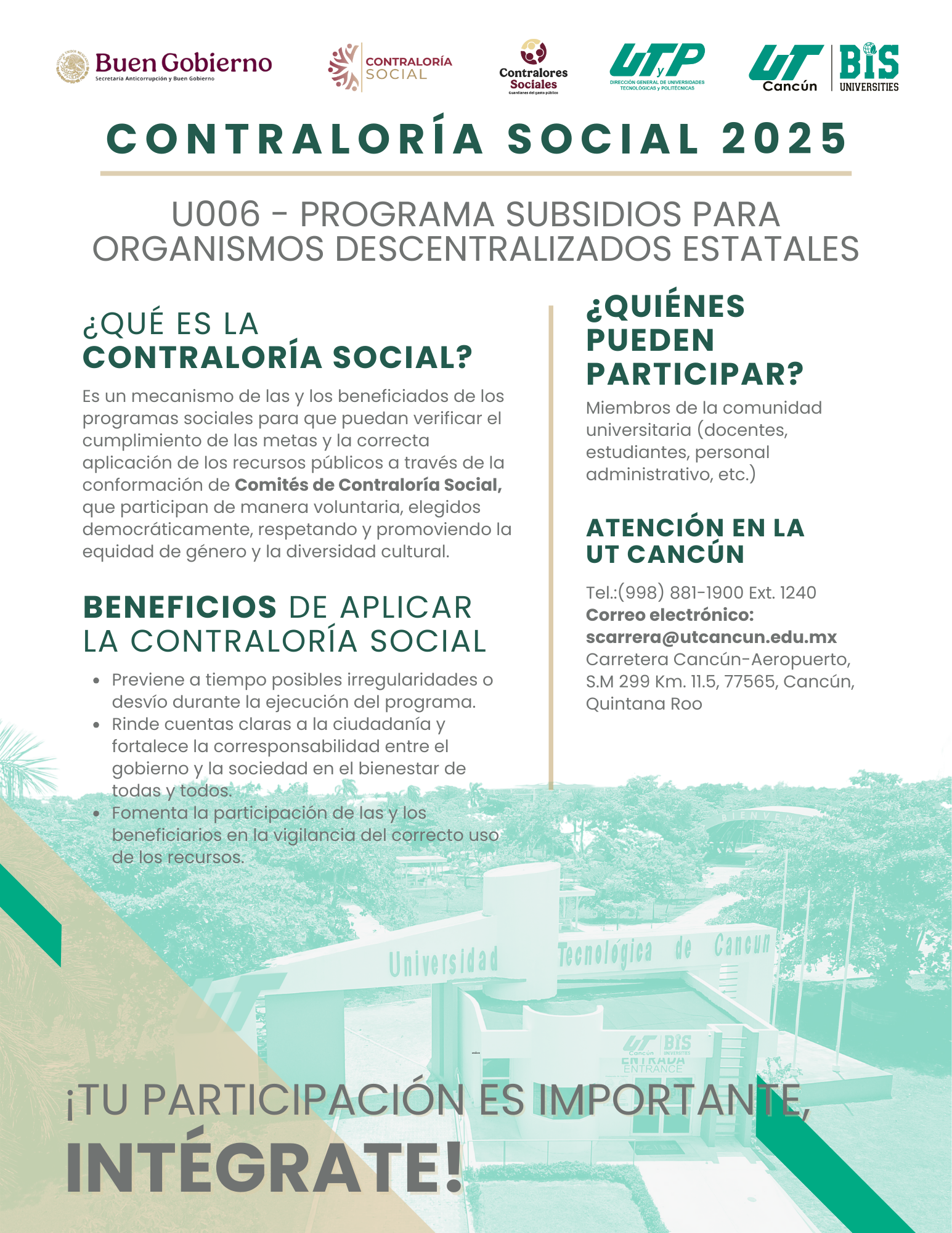 Contraloría Social del Programa U006 “Subsidios Federales para Organismos Descentralizados Estatales”